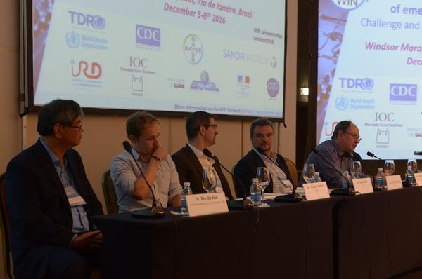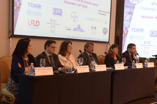 Dr Veiga da Costa, vice-director of IOC-Fiocruz, Dr Velayudhan, WHO-NTD, Dr Fouque of WHO-TDR, Dr Bezerra, PAHO © G. Brito