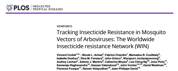A viewpoint has been published in the journal Plos NTD in December 2016 by all WIN members together. This article gave the opportunity to the WIN to raise awareness about the (re)emergence of arbovirus diseases, the propagation of their vectors and about the spread of insecticide resistance that is threathening arboviral disease control.